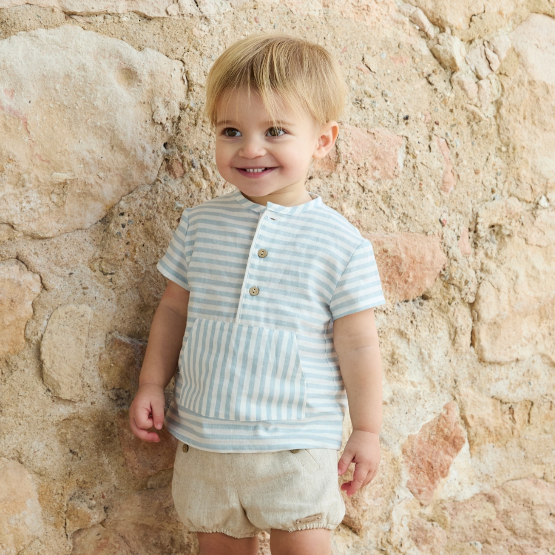 Con la llegada de la nueva luz a Vitoria, transformamos el armario de los más pequeños. Presentamos una colección basada en la combinación de tejidos naturales de alta calidad, donde la frescura y la suavidad se funden en tonos empolvados. Diseños creados para proteger su piel y permitirles disfrutar de cada rayo de sol con total libertad.